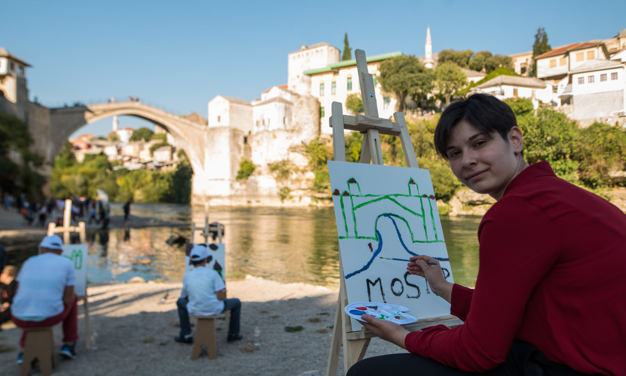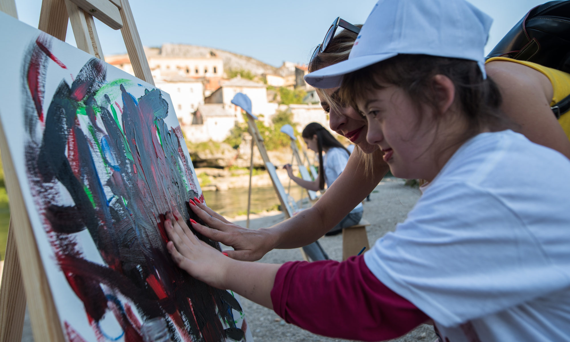 Inkluzivni čas likovnog ispod Starog mosta organizovala je Fondacija Infohouse u okviru regionalnog projekta „Zaštita djece od nasilja i promocija socijalne inkluzije djece s poteškoćama u razvoju u zemljama Zapadnog Balkana i Turskoj“, koji implementira UNICEF BiH uz finansijsku podršku Delegacije Europske unije u BiH. Lokalnu podršku ovom za djecu iznimno važnom kreativnom procesu dalo je Udruženje SAS – Kultura življenja. Mentor inkluzivnog časa likovnog bio je Salko Pezo, akademski slikar i profesor Univerziteta „Džemal Bijedić“ u Mostaru.