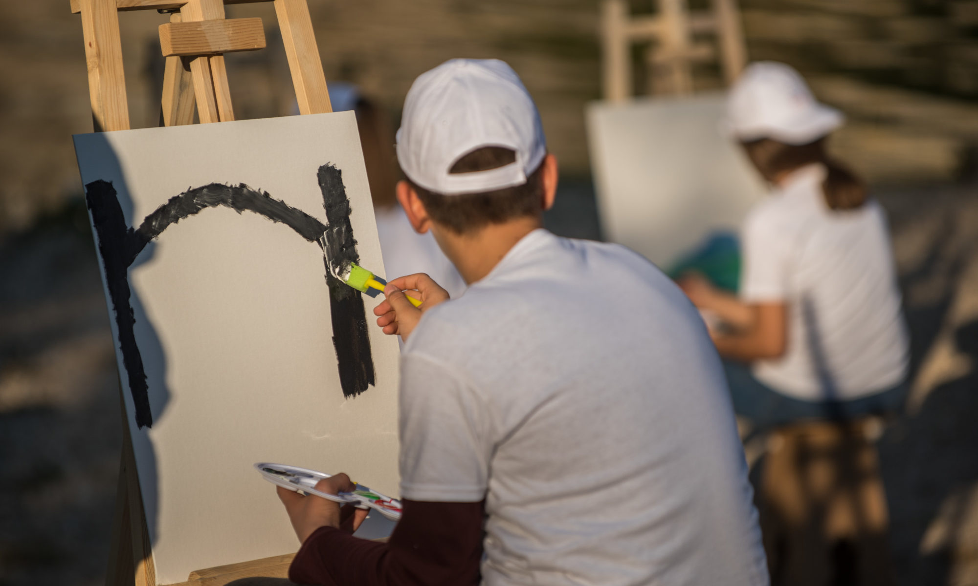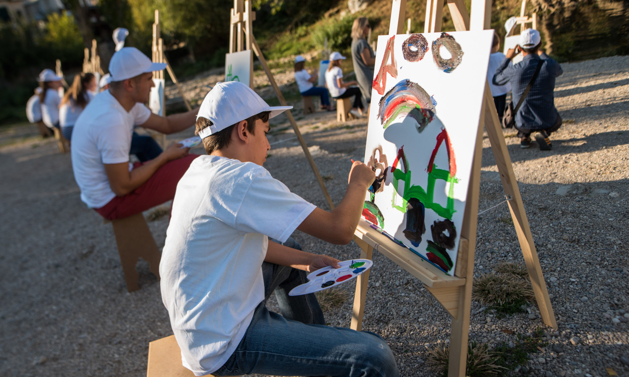 Više od dvadeset dječaka i djevojčica zatekli smo pored štafelaja. Neki/e su se tek odlučivali za motive, jer tema je bila slobodna, a odlučniji/e u izrazu svoju sliku već su privodili/e kraju. Među njima je bila i osmogodišnja Elma koja najviše voli crvenu boju i koja nas je zamolila da joj asistiramo prilikom miješanja boje i vode. Kad joj je vještom kombinacijom tonova popunila platno, odlučila je da kistom interveniše na majici. I imala je pravo. Umjetnici/e, premda u povoju, trebaju biti rasterećeni konvencija.