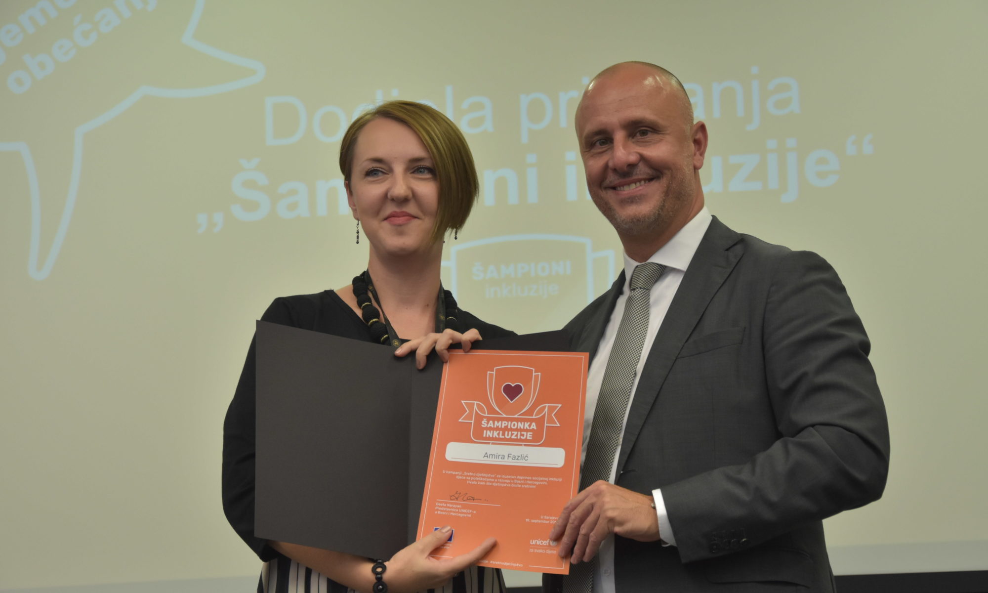 Fazlić Amira je učiteljica u Osnovnoj školi “Hasan Kikić” iz Gračanice. Njeni učenici su djevojčice i dječaci IV razreda, a među njima je i dječak sa dijagnozom Autizam. Amira svaki dan svojim primjerom pokazuje kako je moguće da se upravo ovaj dječak ne osjeća drugačijim od svojih drugara i drugarica iz razreda. Dječak je postigao fenomenalne rezultate i u odnosu na svoje drugare se ne osjeća isključenim. Učiteljica je zaslužna za stvaranje podržavajuce klime u razredu koja je rezultirala ovim uspjesima. Na tome su izuzetno zahvalni roditelji koji imaju odličnu saradnju sa učiteljicom i cijelim razredom. Smatram da je učiteljica Amira Fazlić sampionka inkluzije!