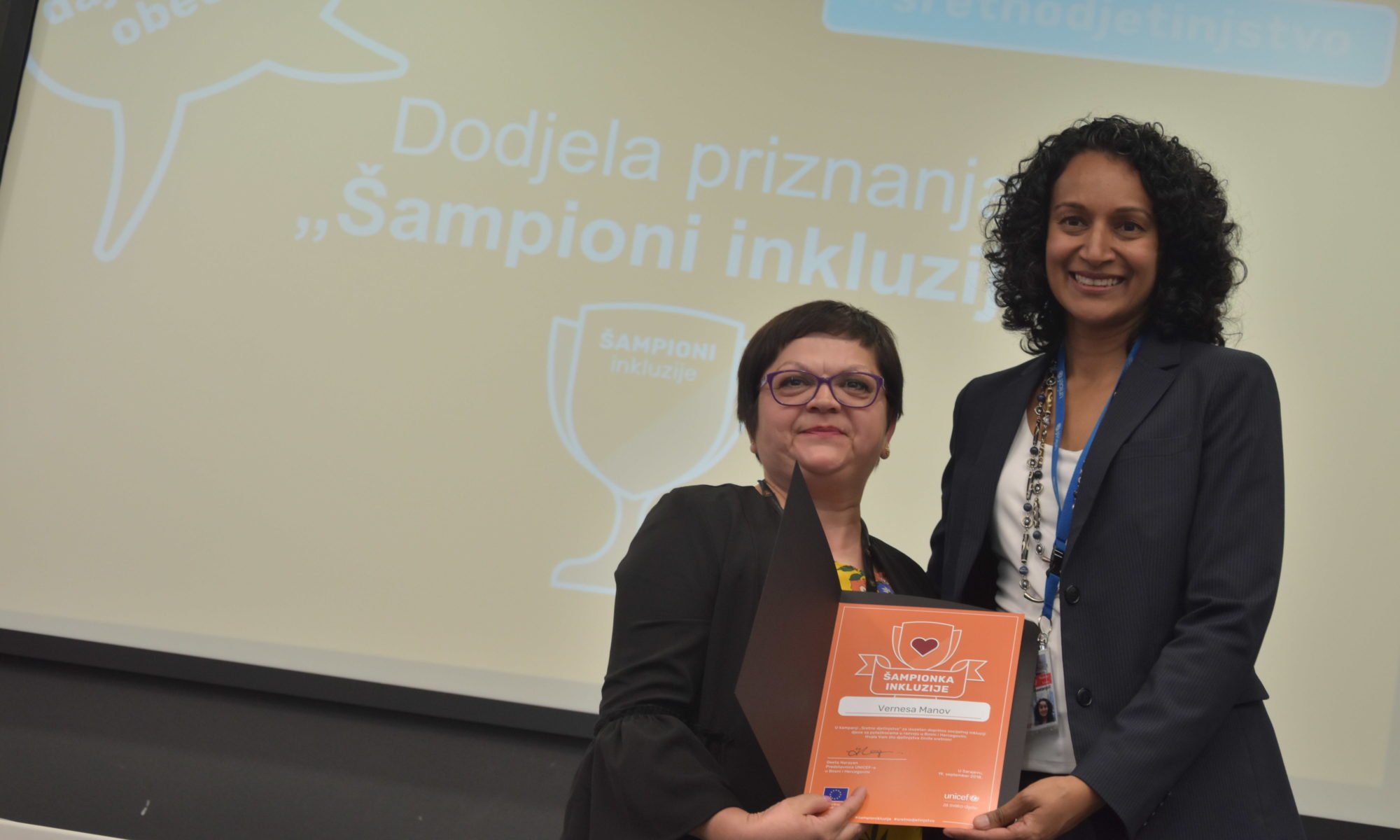 Nastavnica Vernesa i sama ima od rođenja tjelesne poteškoće, ali svojim primjerom, zalaganjem u radu sa djecom i mladima uzor je mnogima sa kojim radi i kao nastavnica u teatru i u školi te kao saradnica mnogobrojnih centara i udruženja. I na promocijama njenih knjiga, predstavama nikada djeca sa invaliditetom nisu zapostavljena i njeni programi vezani za teatar i razvijanje kreativnosti osmišljavani su da u njima učestvuju i djeca sa invaliditetom koja u nastavnici vide uzor, da se vrijedi zalagati i truditi bez obzira na poteškoće. Predstave za i o djeci sa invaliditetom, upute i ideje kako podrzavati takvu djecu i bajke koje piše i priređuje i za djecu sa invaliditetom najbolji su putokazi i toj djeci u životu kako se treba boriti.